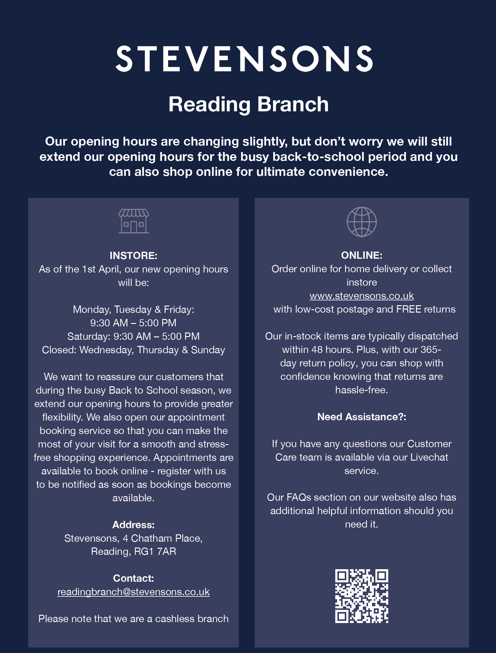 Stevensons Stores and Website Update April 2025 - Reading Branch